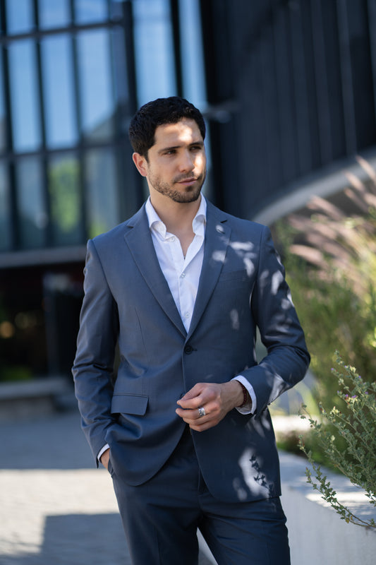 Traje Slim Fit Dos Piezas Azul Pizarra