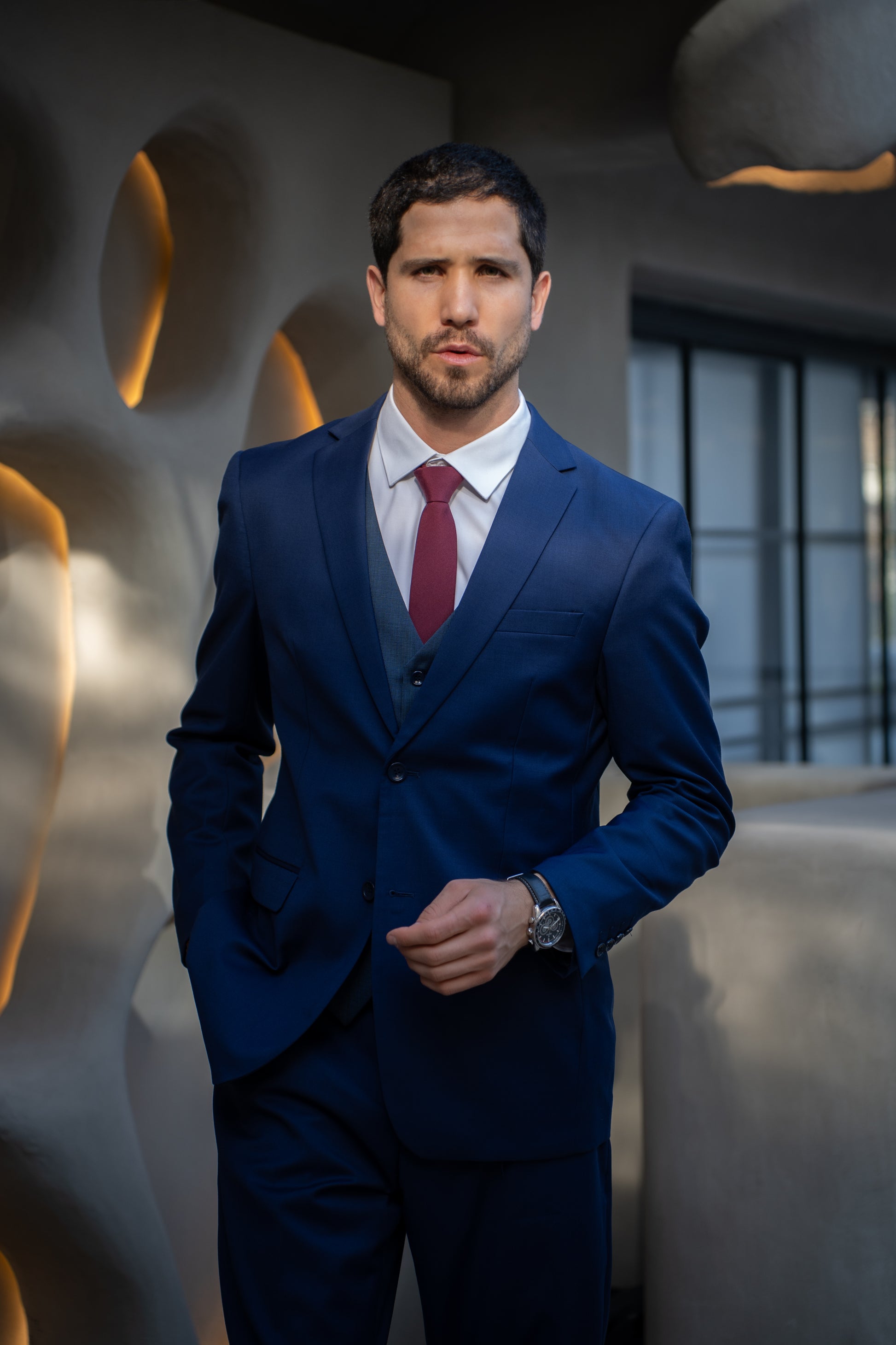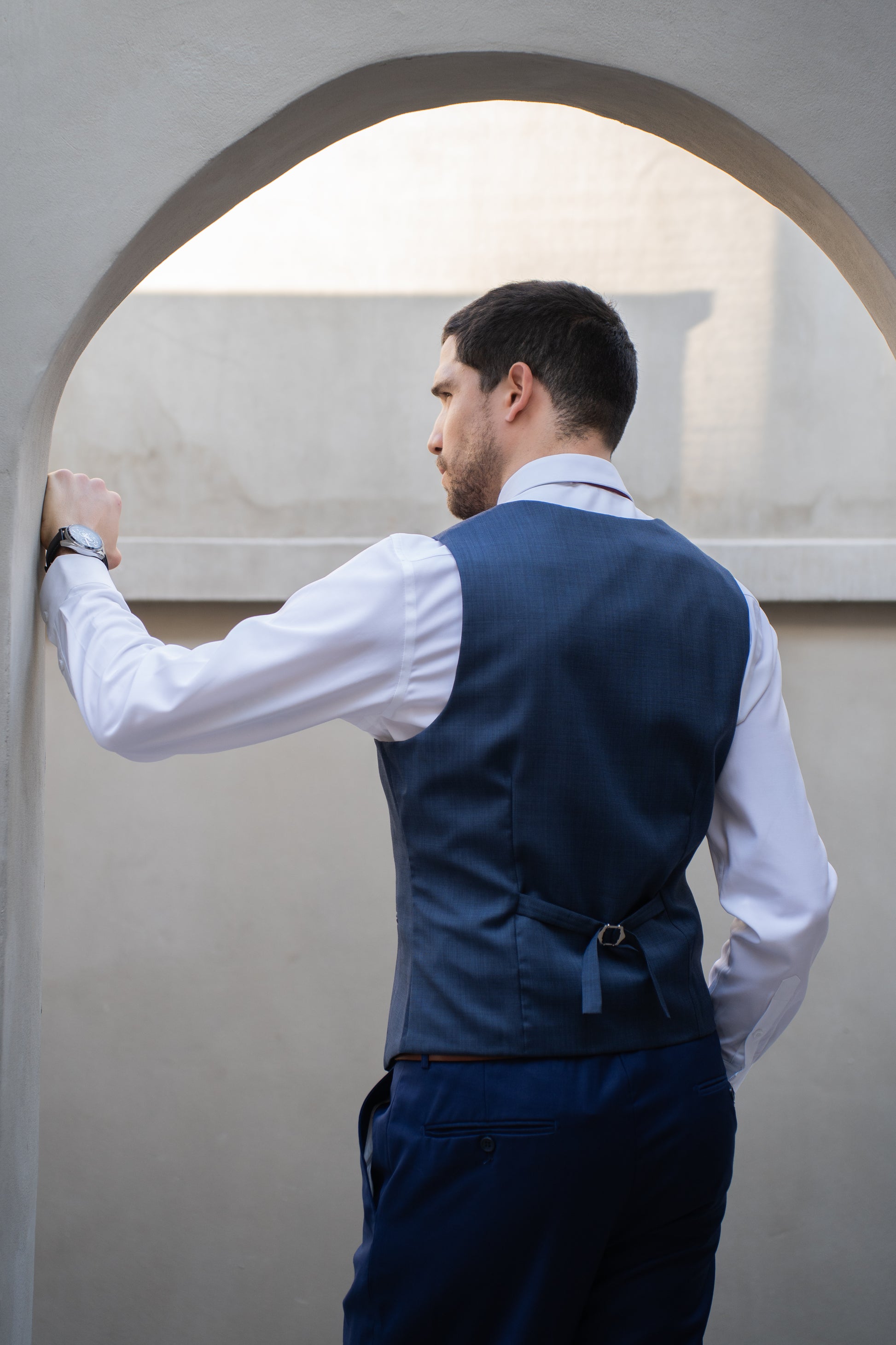 Gillet azul texturizado, elegante y moderno, ideal para sumar personalidad y estilo a tu look formal o semi-formal.