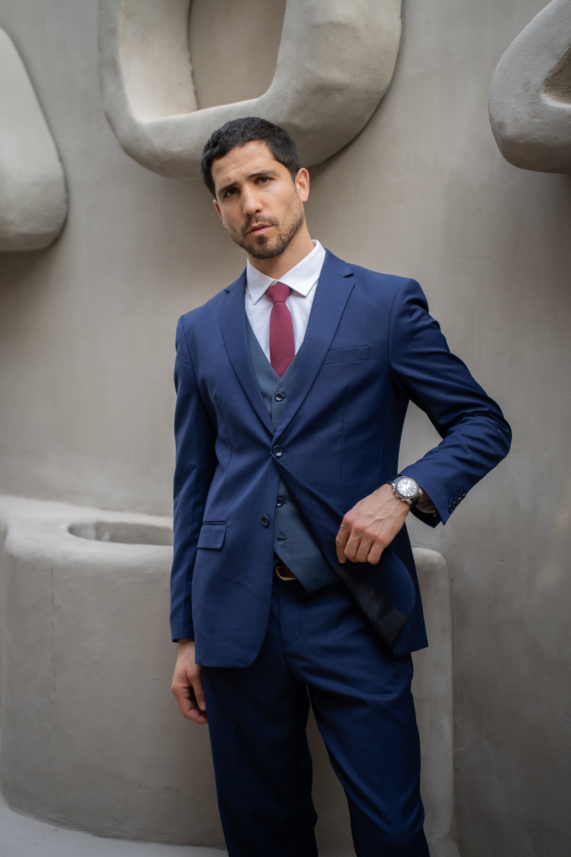 Este traje azul marino es la combinación perfecta de estilo y comodidad. Diseñado en Chile y hecho con una mezcla de 50% lana, es suave y fresco, ideal tanto para el día a día como para eventos importantes. Su corte slim fit te da un look moderno y ajustado, sin perder comodidad. Disponible en cuatro tallas diferentes para que encuentres el calce que mejor te queda. Un traje versátil y con onda para cualquier ocasión donde quieras destacar.