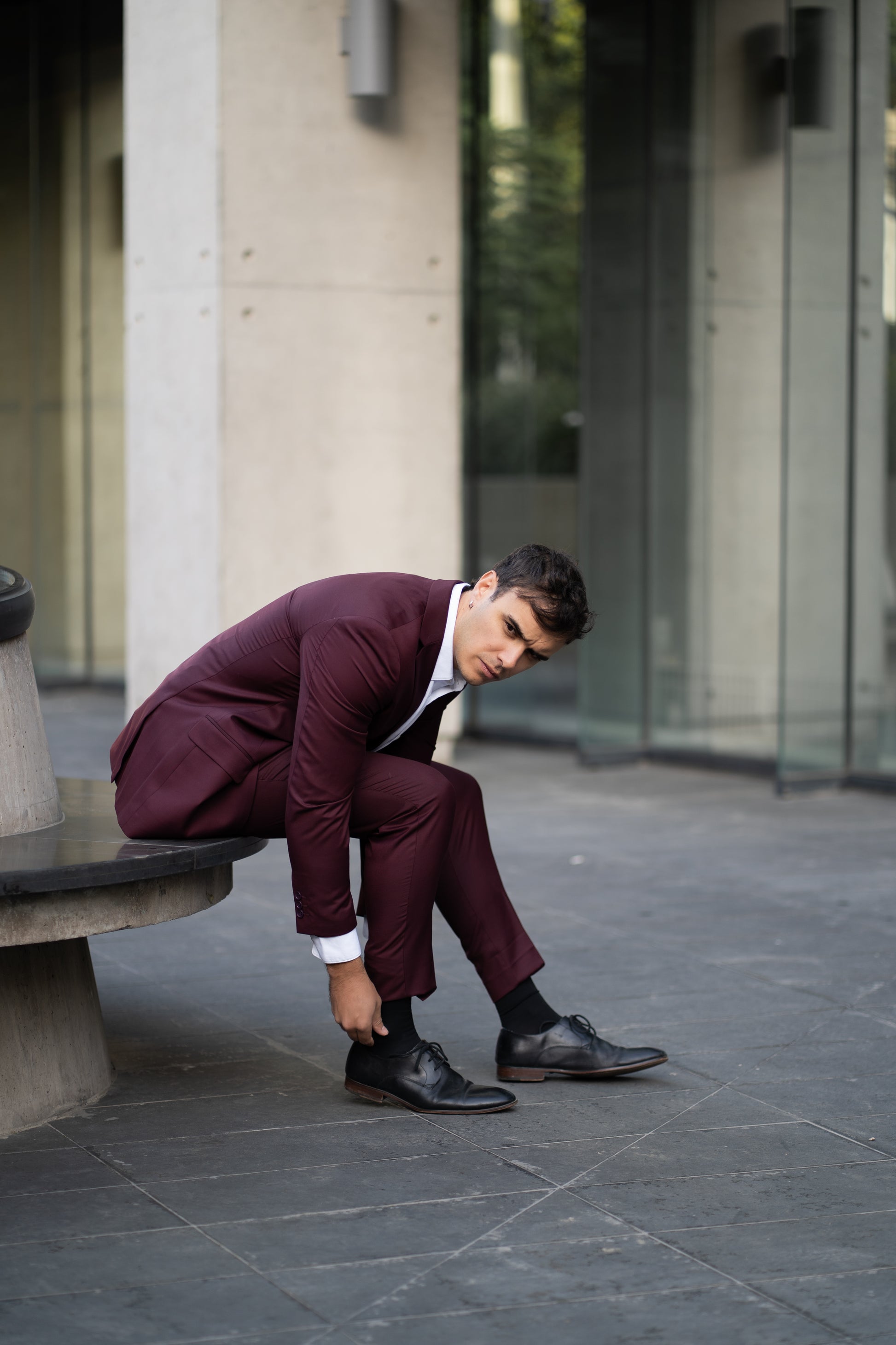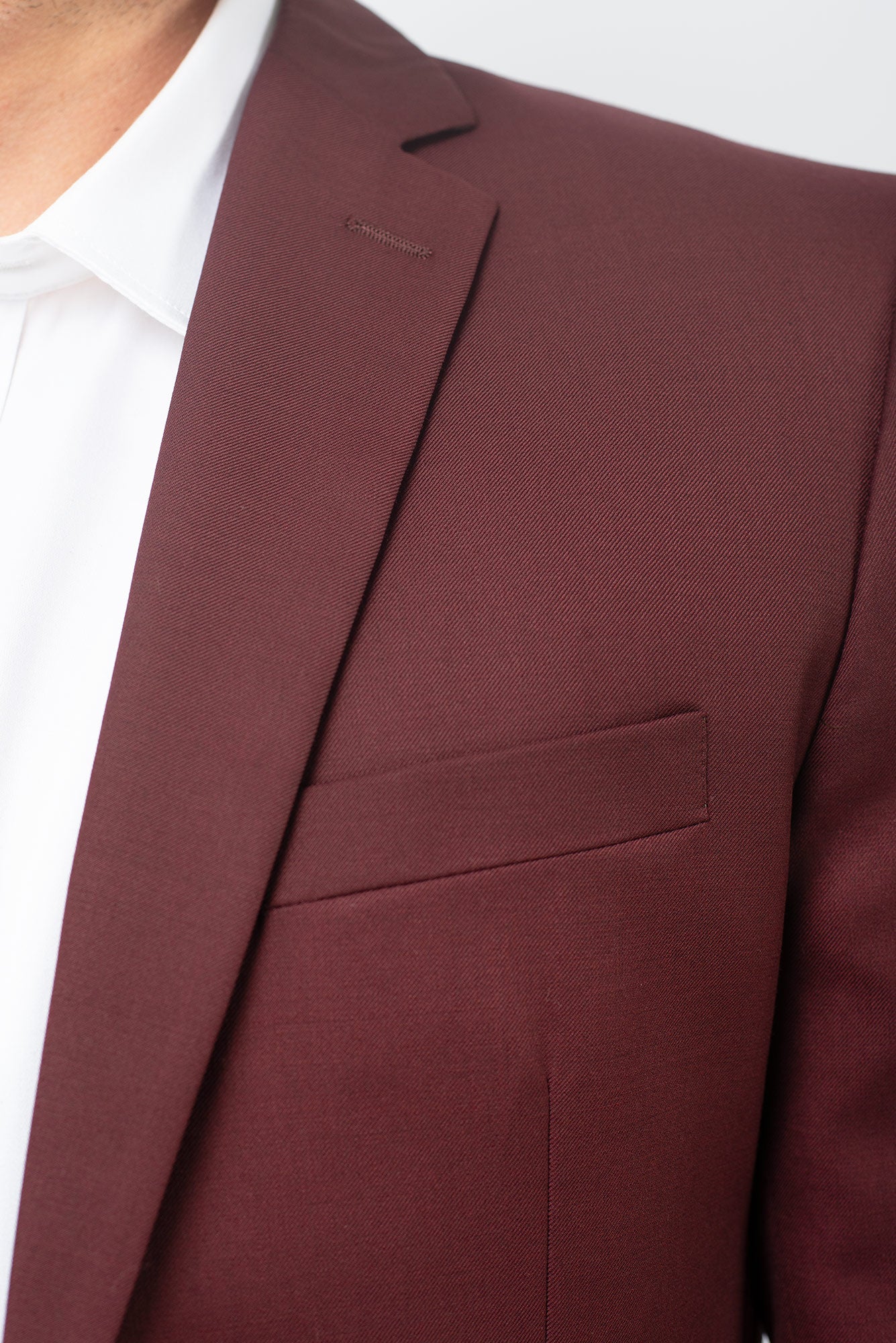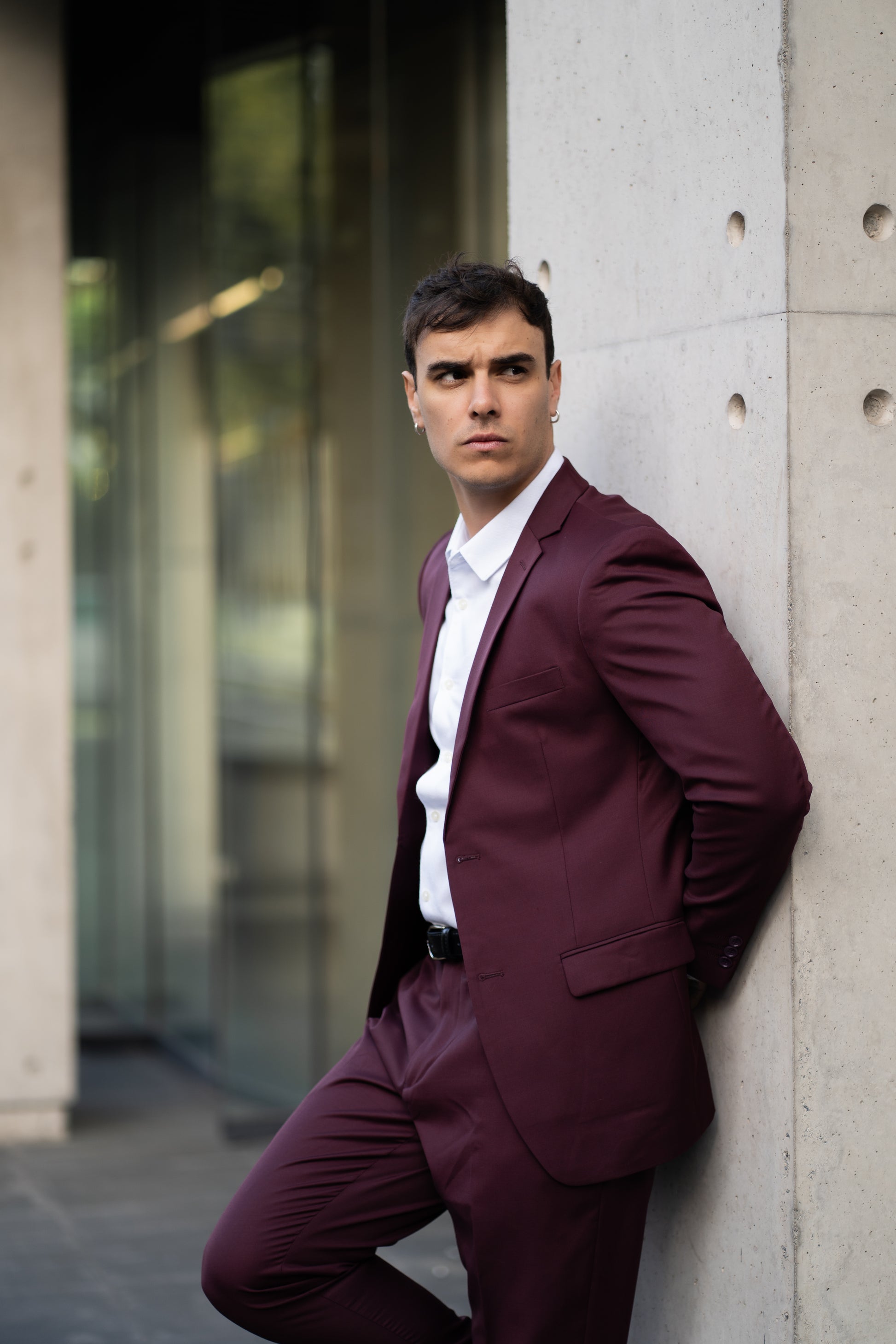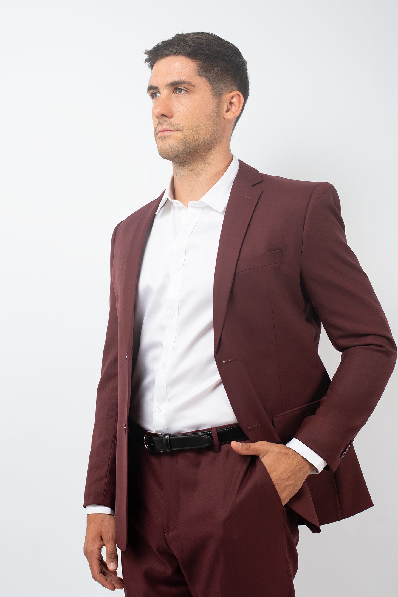 El traje color burdeo, inspirado en el elegante tono del vino tinto, es una apuesta segura para quienes buscan destacar con estilo y personalidad. Confeccionado en tela de 50% lana y corte slim fit, es ideal para eventos especiales o celebraciones donde un toque de sofisticación y originalidad marcan la diferencia. Un color profundo, moderno y lleno de carácter.