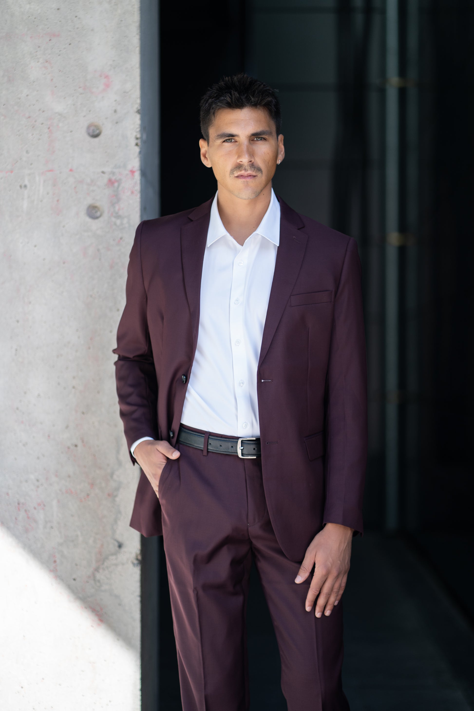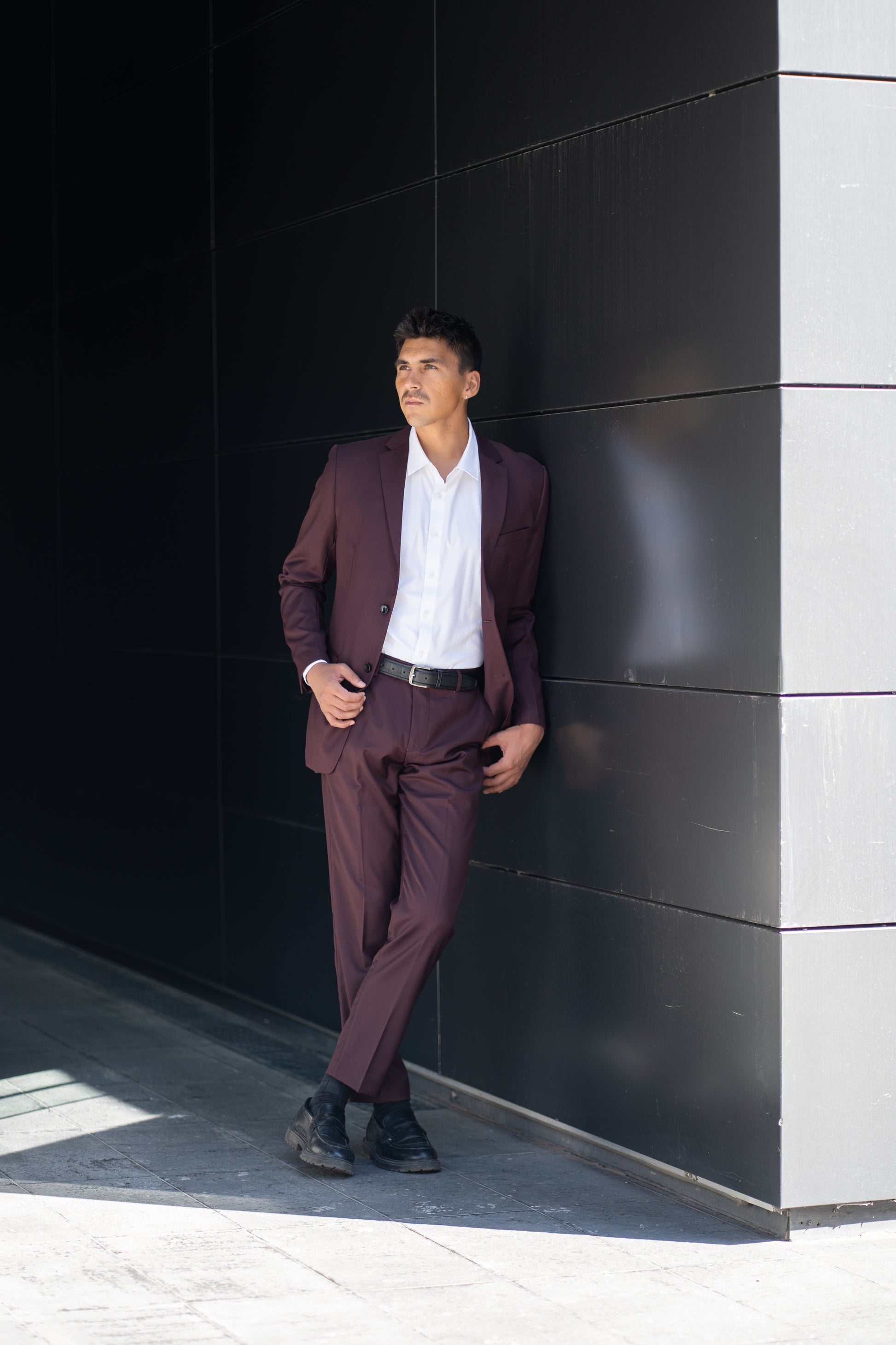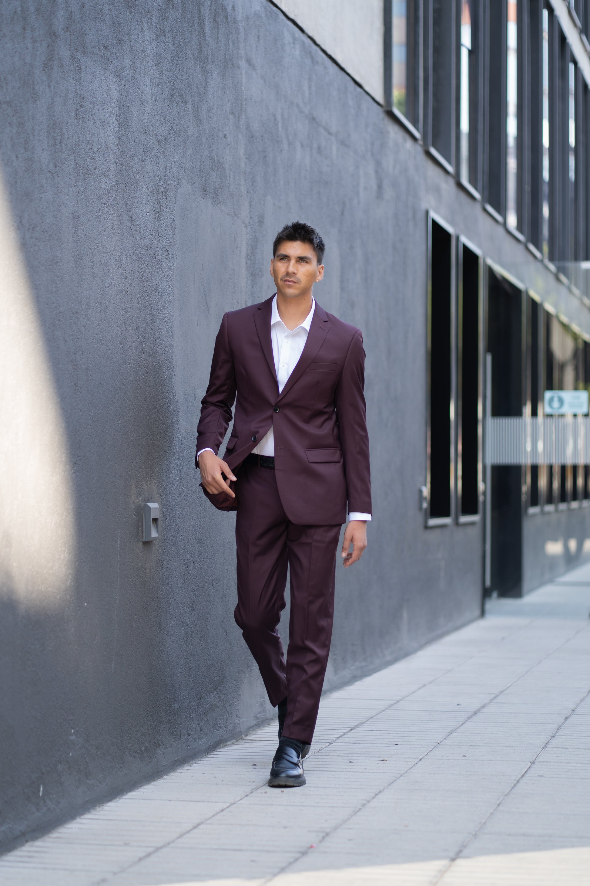 El traje color burdeo, inspirado en el elegante tono del vino tinto, es una apuesta segura para quienes buscan destacar con estilo y personalidad. Confeccionado en tela de 70% lana y corte slim fit, es ideal para eventos especiales o celebraciones donde un toque de sofisticación y originalidad marcan la diferencia. Un color profundo, moderno y lleno de carácter.