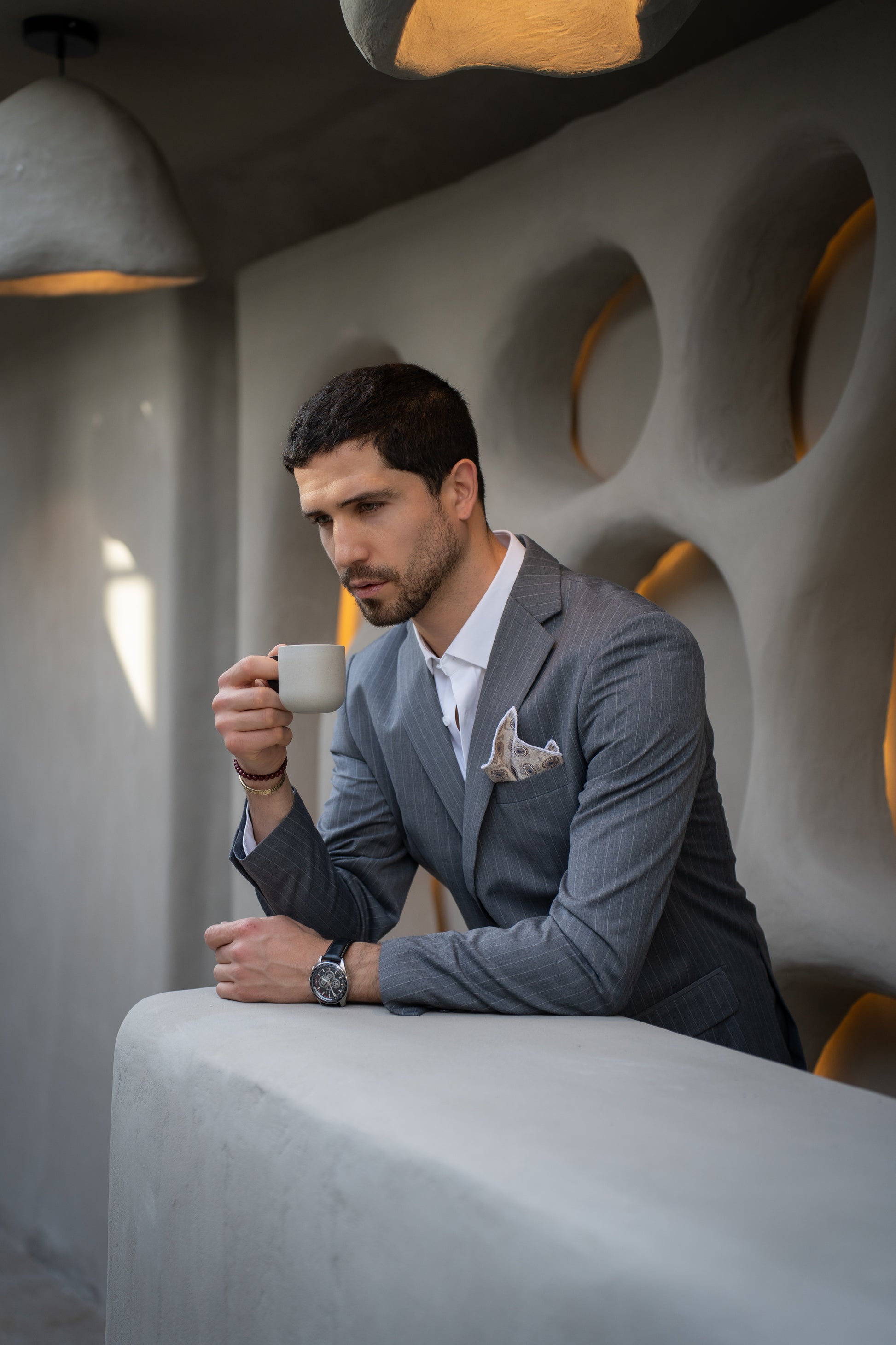Clásico con un giro moderno, este traje slim fit gris rayado es la elección perfecta para quienes buscan destacar con estilo y personalidad. Su corte entallado define la figura sin restringir el movimiento, logrando un balance ideal entre elegancia y comodidad. El diseño a rayas delgadas aporta un toque distintivo y profesional, ideal para reuniones, eventos o jornadas laborales con carácter. La chaqueta cuenta con solapas de muesca, bolsillos con tapa y doble abertura trasera, mientras que el pantalón de corte ajustado estiliza la silueta. Un traje con actitud, pensado para quienes cuidan cada detalle.